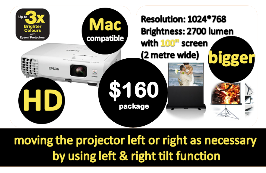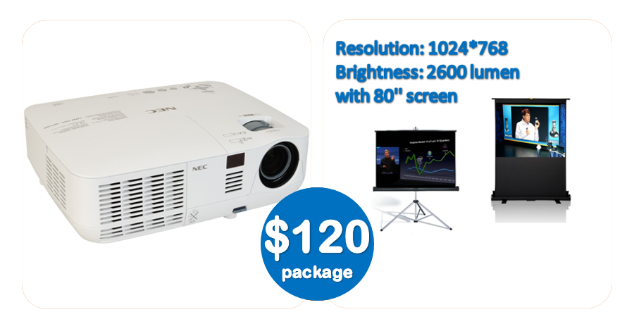 Projectors and screens Packages for hire